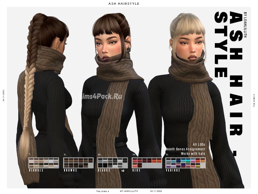 Женская прическа Ash Hairstyle для Симс 4