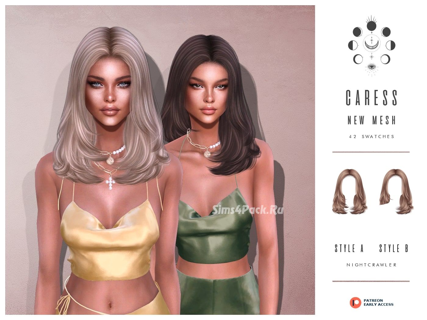 Объёмные alpha волосы чуть ниже плеч в 2 версиях и 42 цветовых образцах. Прическа частично работает с головными уборами. Доступна для женщин.