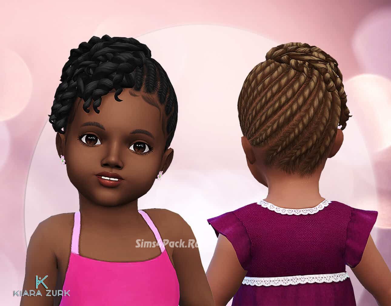 Maxis Match брейды с кудряшками сверху в 24 EA цветовых образцах. Прическа частично работает с головными уборами. Доступна для малышек и малышей тоддлеров.
