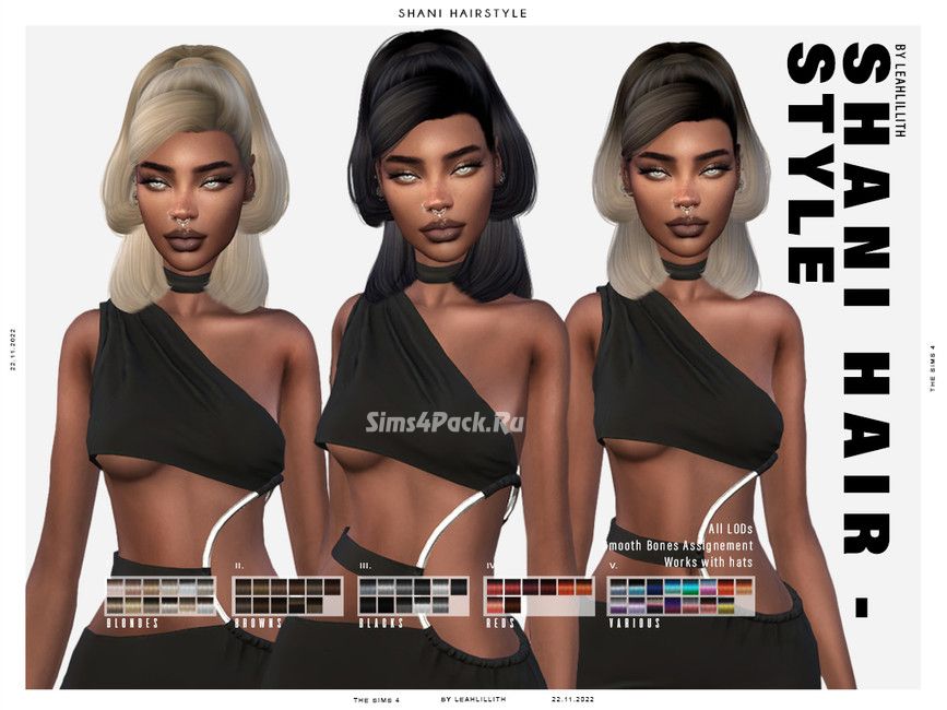Женская прическа Shani Hairstyle для Симс 4