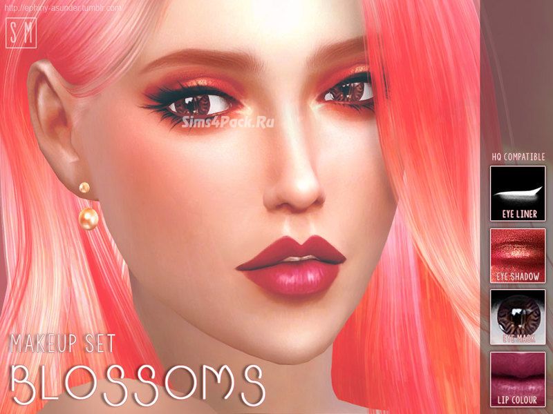 Набор включает в себя подводку для глаз, мерцающие тени, блеск и косметические линзы. HQ текстура присутствует.