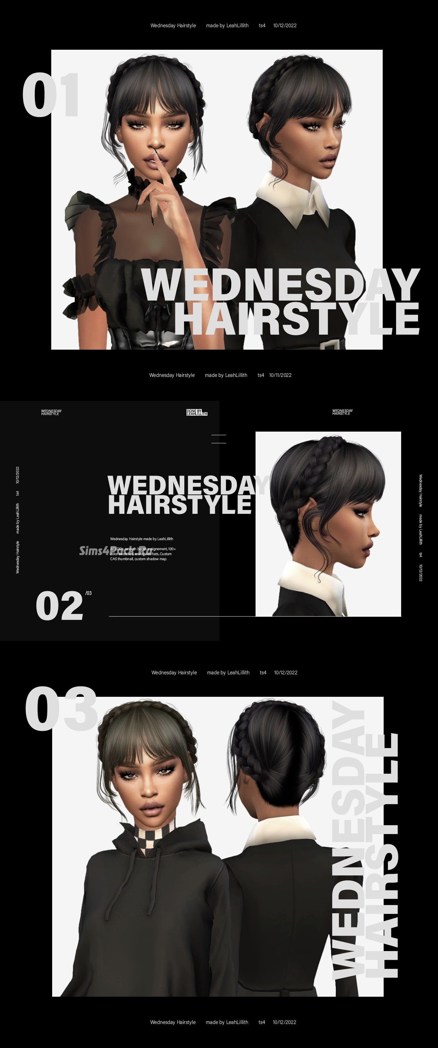 На создание этой прически с косой вокруг головы и прямой длинной челочкой автора вдохновил образ главной героини Уэнздей Аддамс в одноимённом сериале Уэнздей. 99 свотчей. Частично работает с головными уборами. Доступна для женщин.