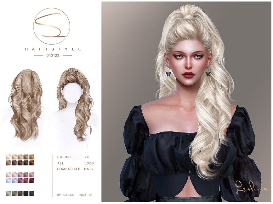 Шикарный высокий конский хвост на длинных волнистых alpha волосах в 24 цветковых решениях. Прическа частично работает с головными уборами. HQ совместима. Доступна для женщин.