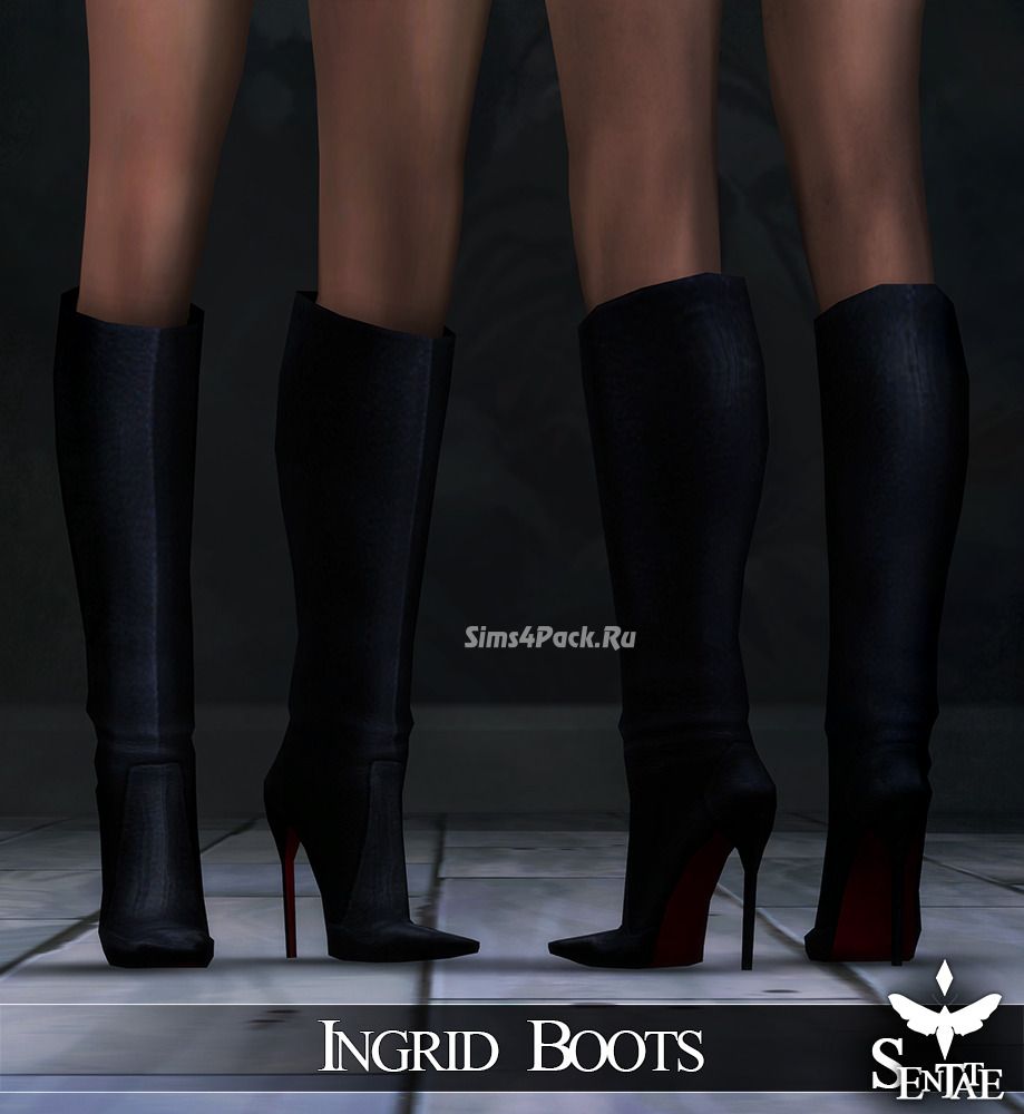 Кожаные сапоги чуть ниже колена на шпильке в 35 цветовых решениях. Maxis Match. Доступны для женщин.