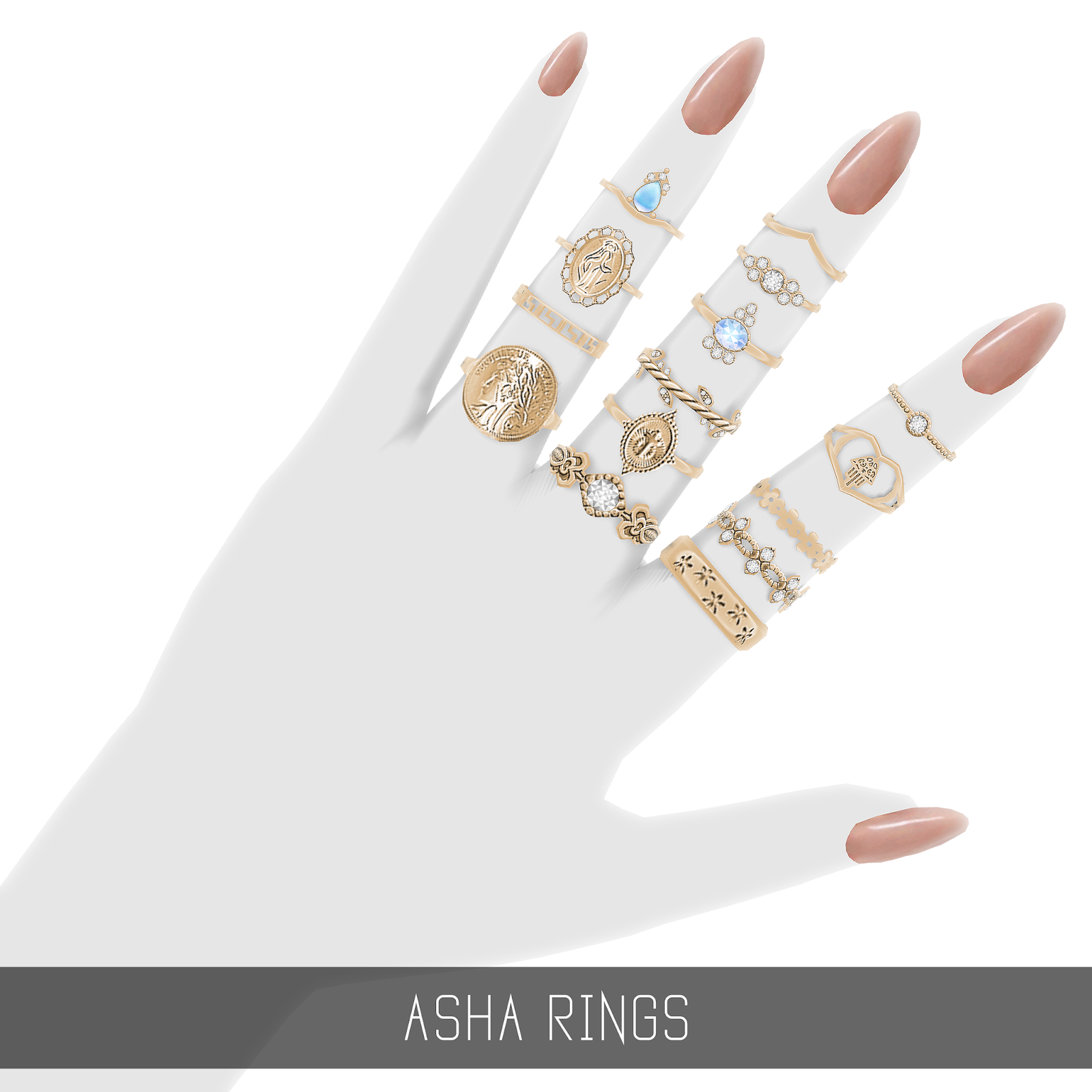 Кольца используют редко используемое пространство текстур, чтобы получить текстуру более высокого качества. Единственный недостаток, который я обнаружил, это то, что они могут не работать с некоторыми волосами EA/maxis 3 версии (для правой руки, для левой руки и для обеих рук),