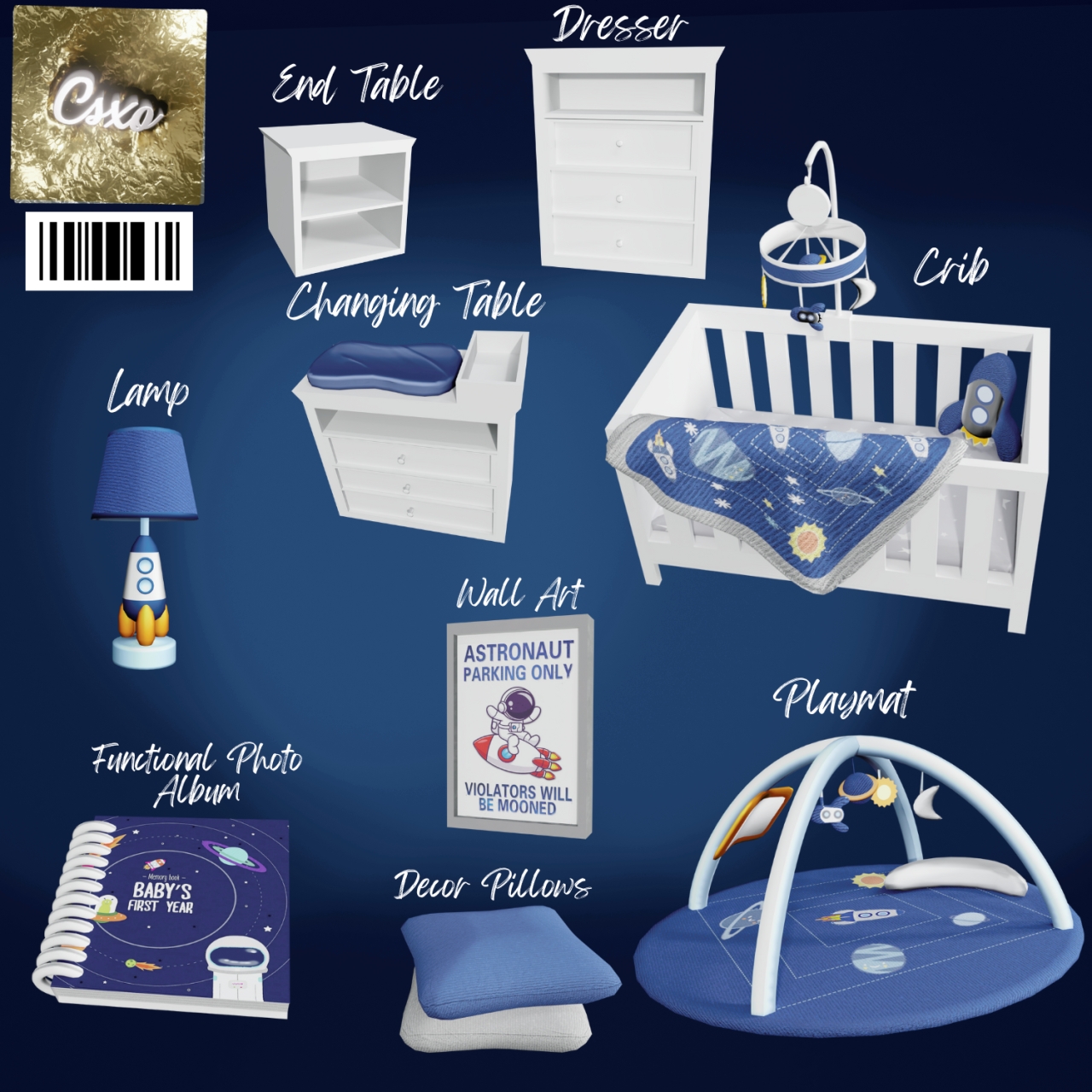 9 товаров Один образец Все предметы можно найти, выполнив поиск по запросу «CeceSimsXO» или «Astro». Всё в этом наборе функционально, кроме декоративных подушек.