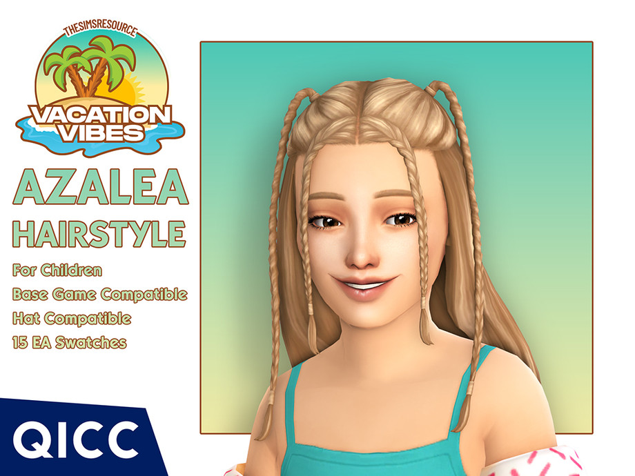 Причёска с детскими косичками. - Maxis Match - Совместимо с базовой игрой - Совместимо с головными уборами - Детский CC для The Sims 4 - 15 образцов EA