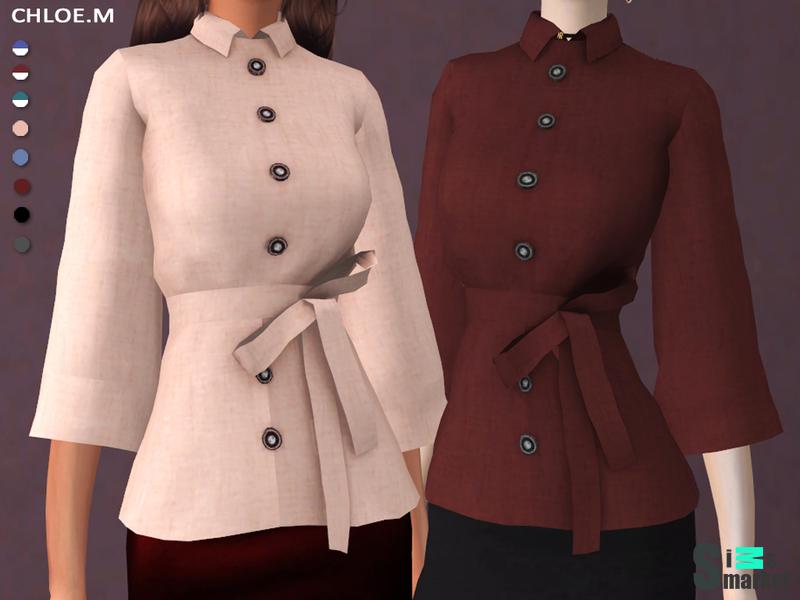 Мод для Sims 4 - красивая длинная блузка с поясом, имеется 8 расцветок.
