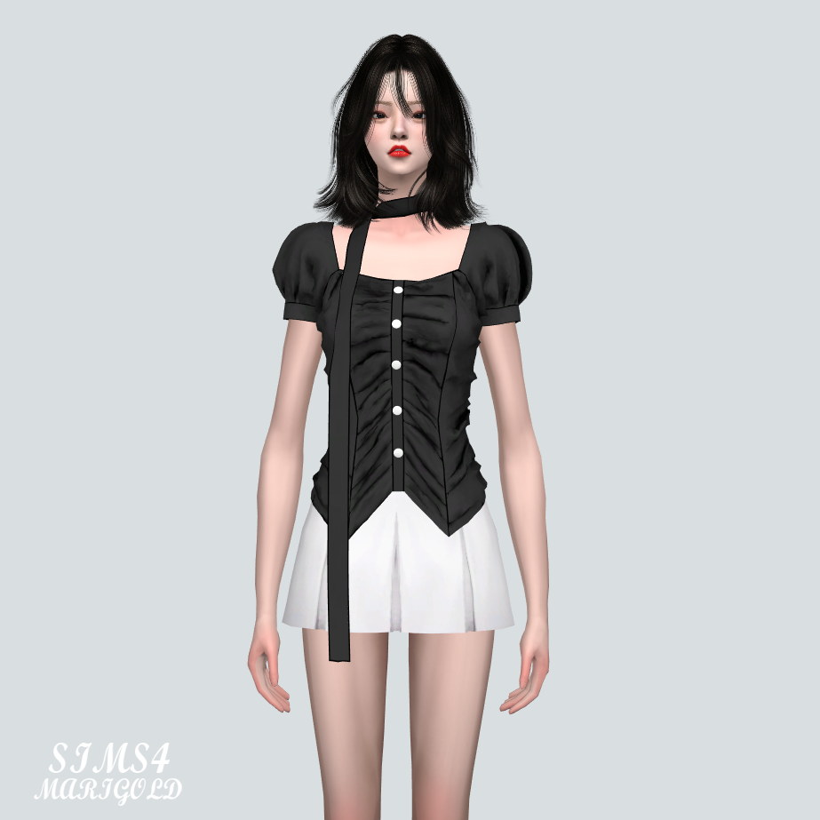Блузка с шарфиком - 11 Scarf Shirring Puff Sleeves Bouse