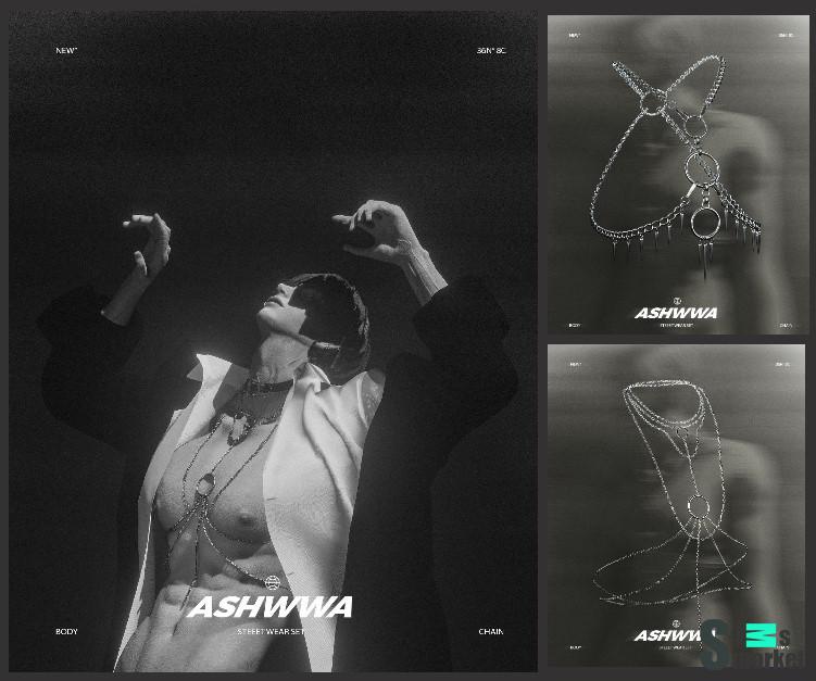 Бодичейн для симов ",Streetwear accessories set#01", для Симс 4