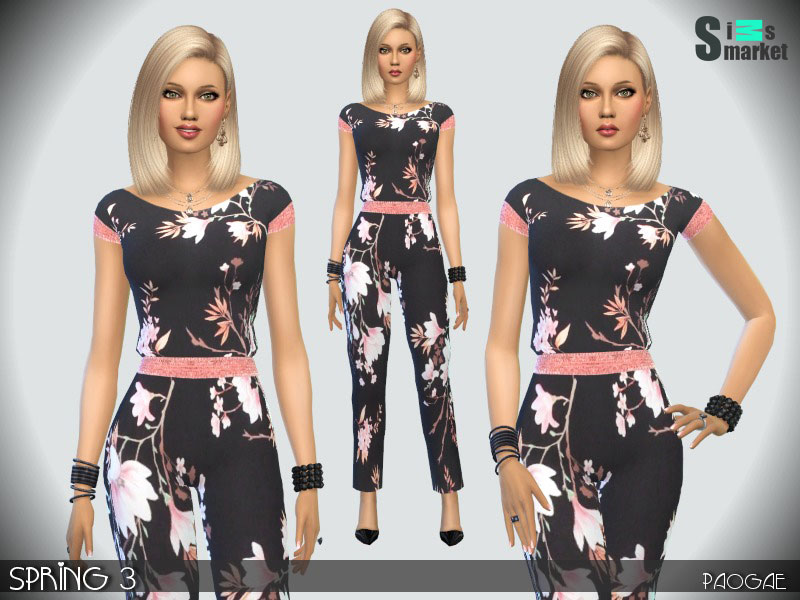 Черный комбинезон с весенними цветами by Paogae
