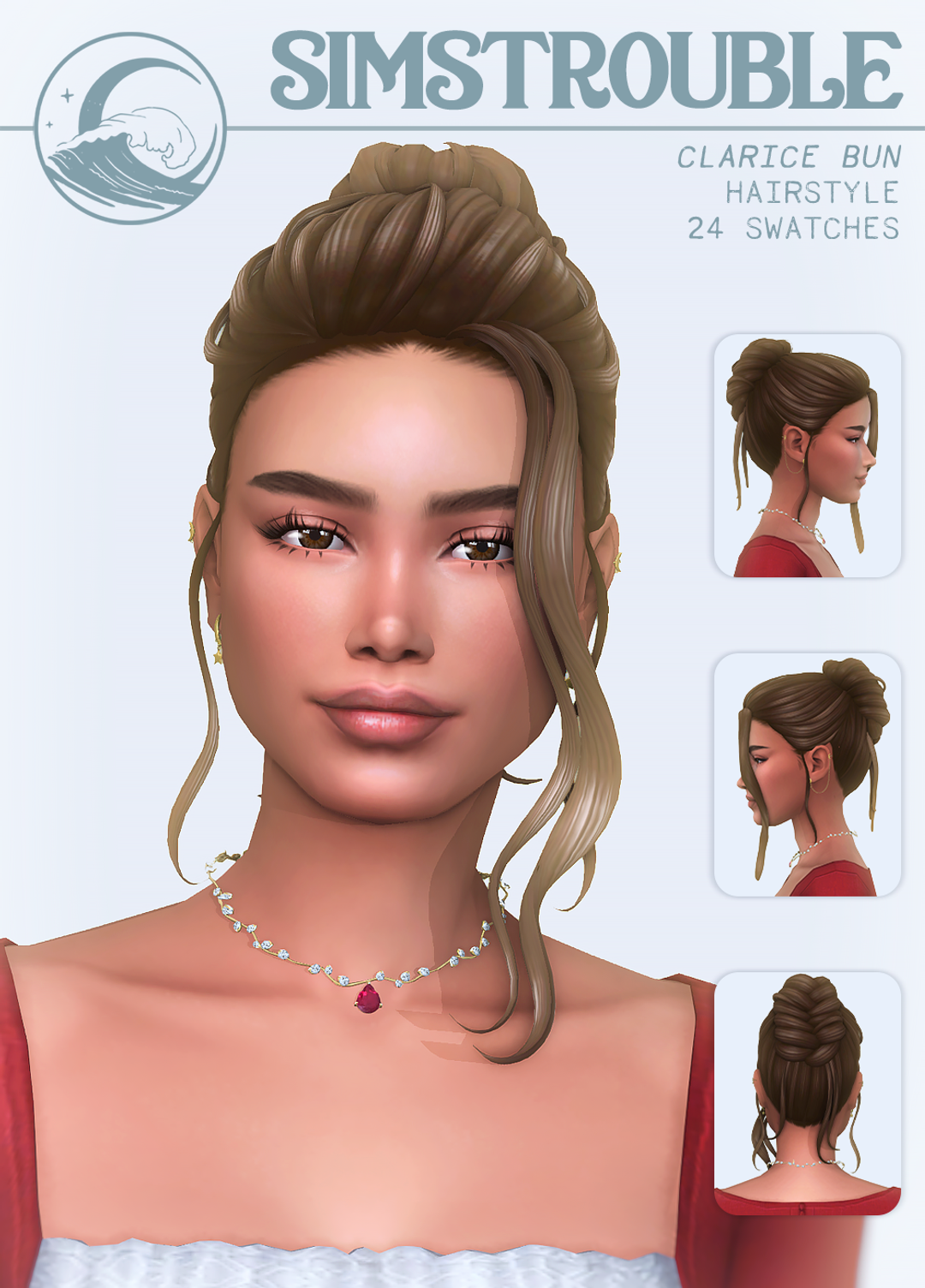 Simstrouble - Clarice Hairstyle, Bun (4 Versions)