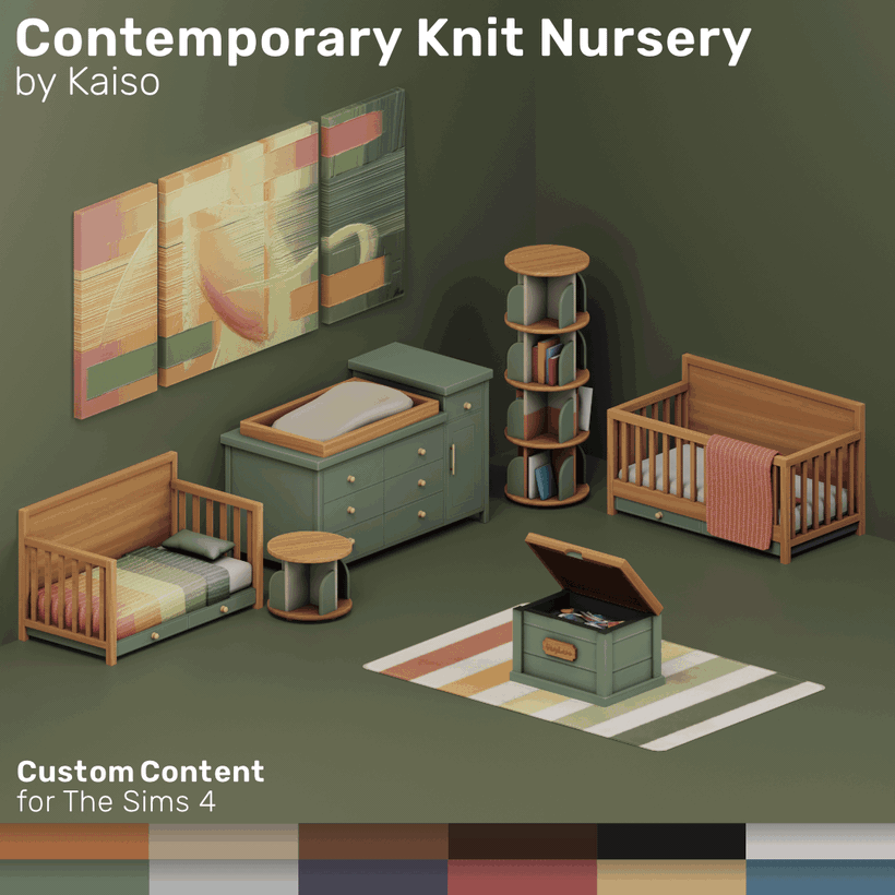 8 новых товаров с 6 образцами на каждый: ✳️Четырехъярусное «вращающееся» убежище для историй ✳️Одноярусный вращающийся приставной столик Story Haven ✳️Ящик для игрушек Toy Haven ✳️Современный вязаный пеленальный столик ✳️Современный вязаный мечтательный дуэт: детская кроватка ✳️Современный вязаный дуэт Dreamful Duo: Кровать для малышей ✳️Трио для малышей ✳️Современный вязаный нетканый ковер