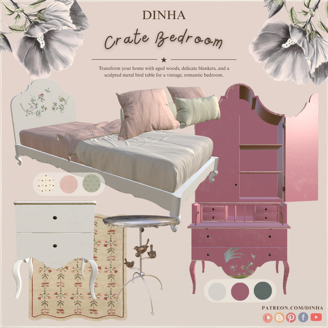 Автор Dinha | 6 предметов Преобразите свой дом с помощью спальни Crate — очаровательного комплекта в винтажном стиле, созданного для того, чтобы привнести мягкость и тепло в пространство ваших симов.