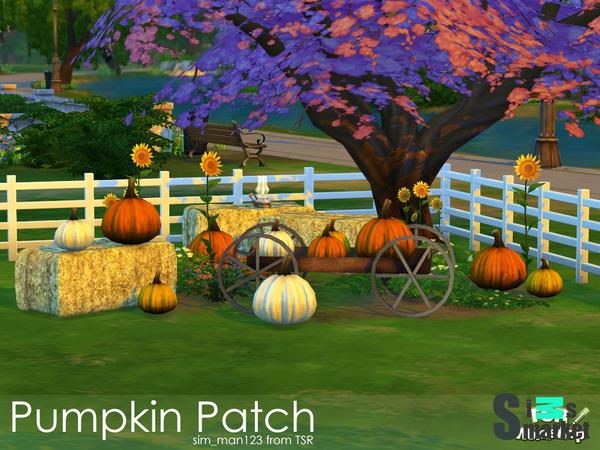 Мод для Sims 4 - телега с тыквами и сено, как раз декор для дворика.