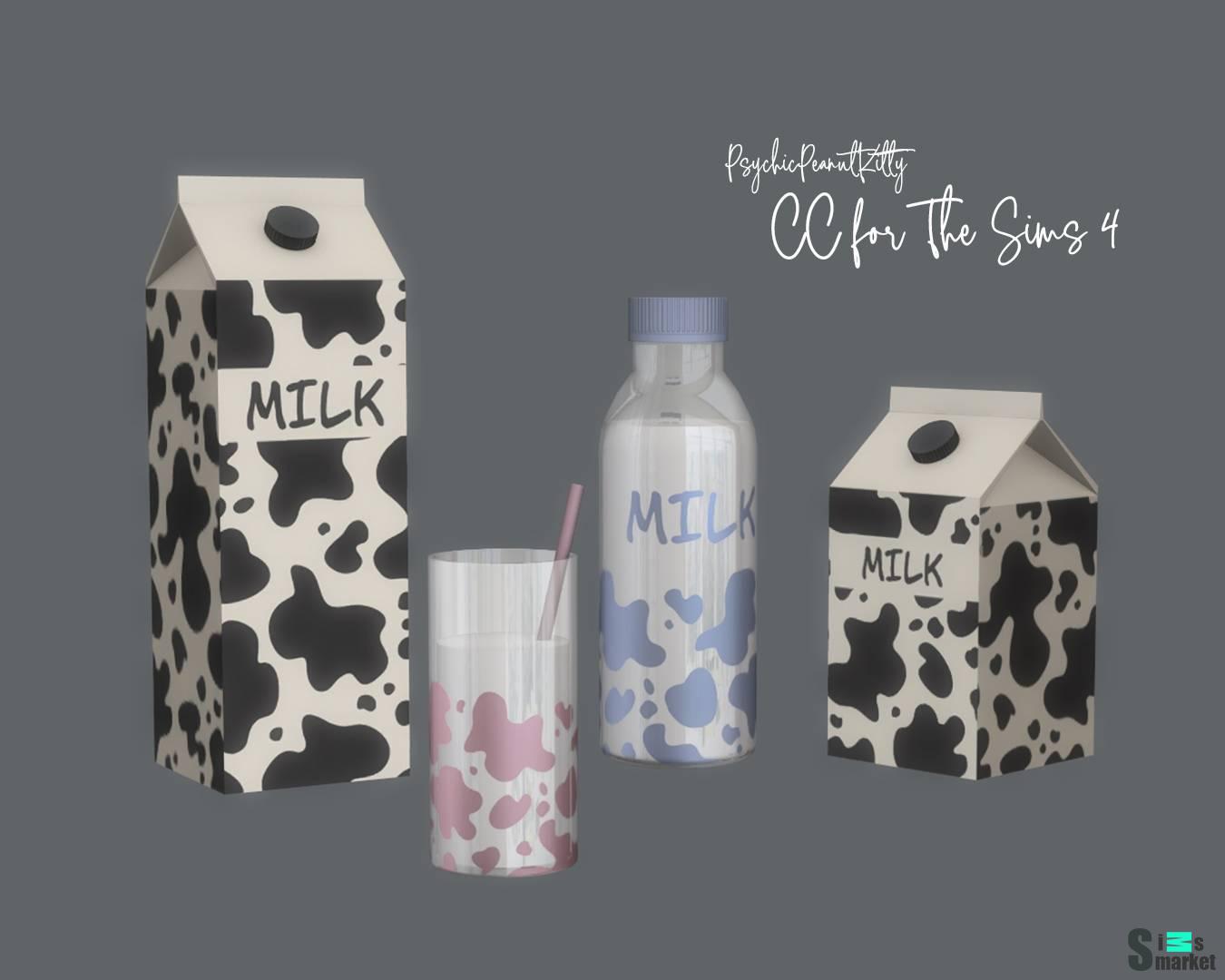 4 объекта : - 2 коробки молока (большая и маленькая) - бутылка с молоком - стакан с молоком и трубочкой Всё в 5 цветовых решениях.