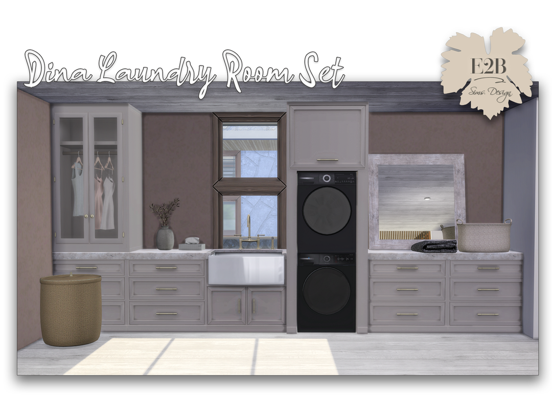 Новый набор для прачечной уже здесь. В набор входят 17 новых предметов: • Корзина • Шкаф • Прилавок • Платье • Сушильная машина • Корзина для белья • Зеркала V1, V2, V3 и V4 • Растение • Рубашка • Одинарный шкафчик • Раковина • Коробка для салфеток • Полотенце • Стиральная машина.