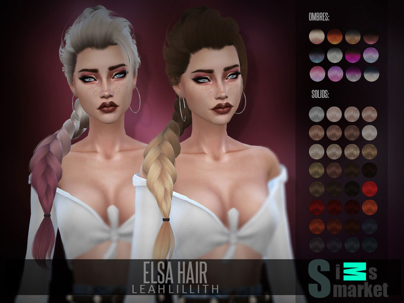 Мод для Sims 4 - женская прическа длинная косичка, имеется множество цветов, работает со шляпами.