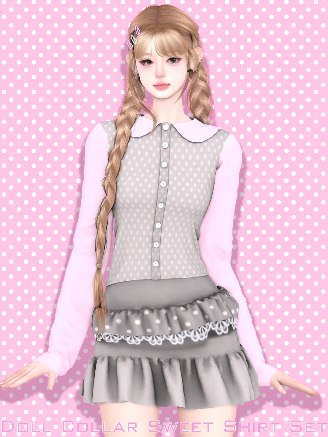 【Liisu55】Комплект рубашки с цветными блоками и воротником в стиле Питера Пэна