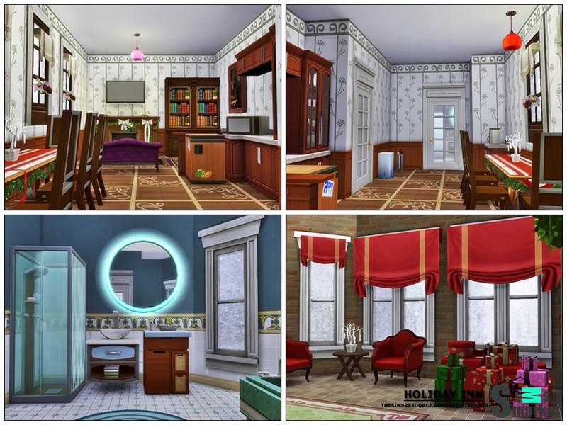 Мод для Sims 4 - большой праздничный дом в новогодней тематике, много комнат