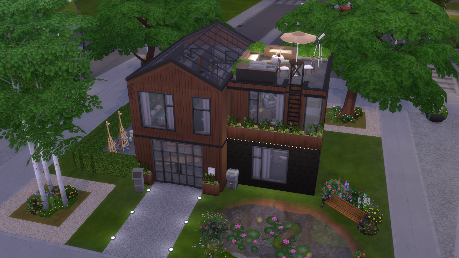– 20х20 – Тип лота: Жилой дом/Помещение для малого бизнеса Минималистичный двухэтажный жилой дом с помещением для малого бизнеса. На первом этаже расположены кухня и зона для мастер-классов, на втором этаже – спальня и кабинет под стеклянной крышей, комната для навыка. На крыше дома расположена терраса с грилем.