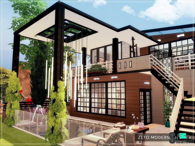 Мод для Sims 4 - большой дом для полной семьи в модерн стиле 1 этаж: Кухня и гостиная открытого типа Ванная с душевой Грилль Бассейн в саду 2 этаж: Холл Спальная для взрослых Детская Терраса
