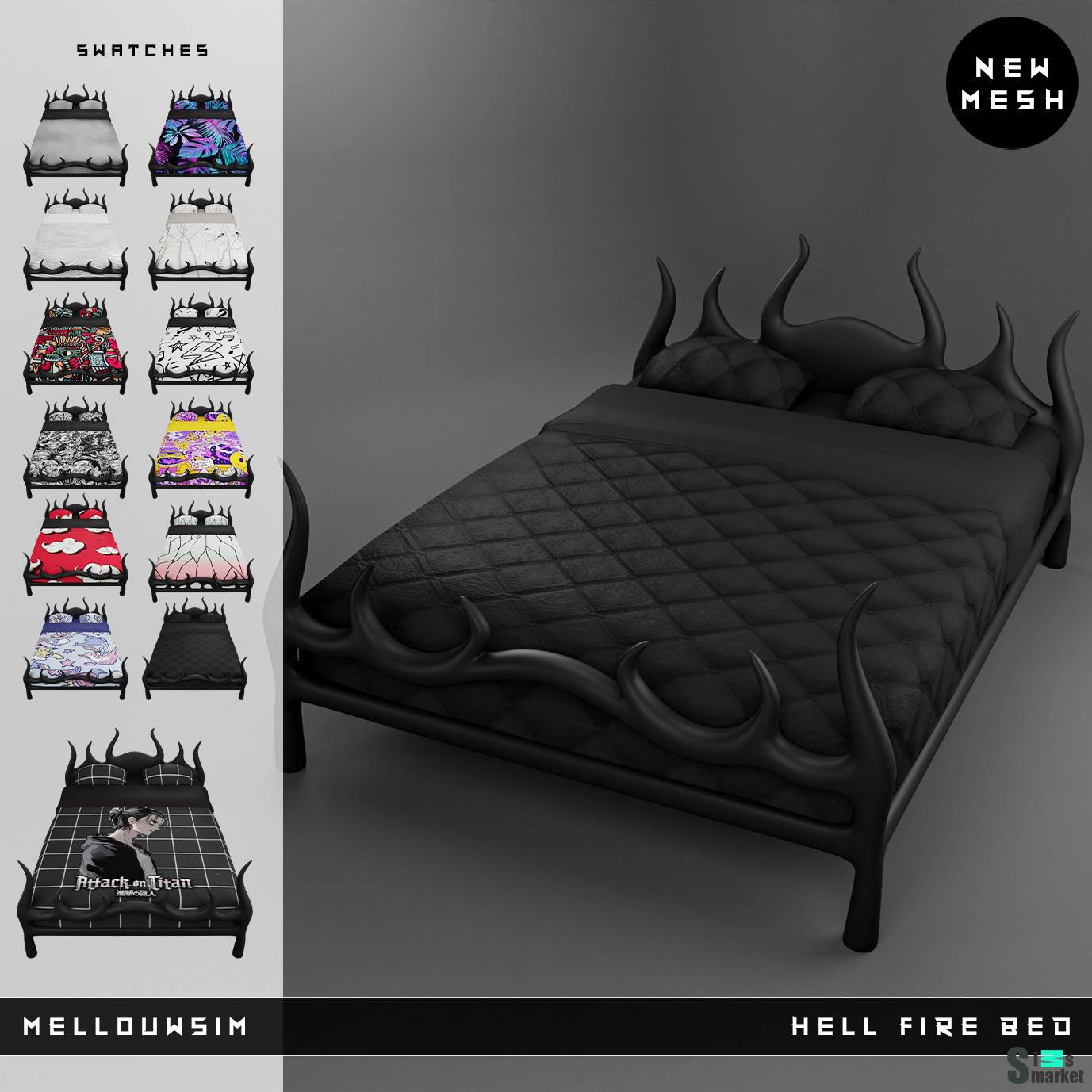 Двуспальная кровать ",Hell Fire Bed", для Симс 4