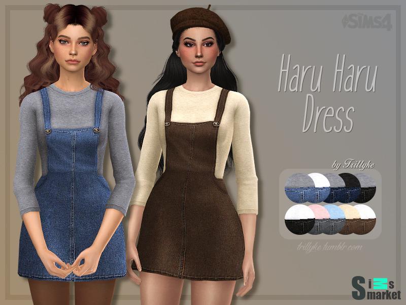Мод для Sims 4 - короткое джинсовое платье для подростков, молодых и взрослых. Имеется 10 цветов.