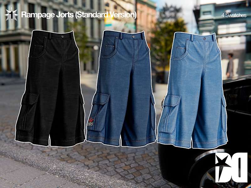 Стандартная версия джинсовых шорт Rampage из набора Street Heat Set теперь доступна с 4 вариантами расцветки для вашего виртуального гардероба.