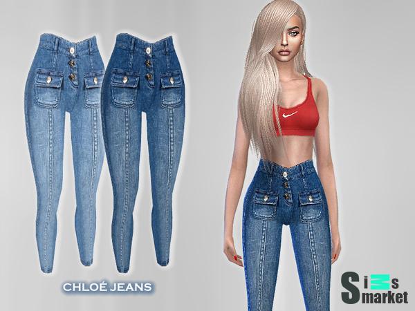 Мод для Sims 4 - джинсы с высокой талией, с разными деталями: пуговицы, карманы.