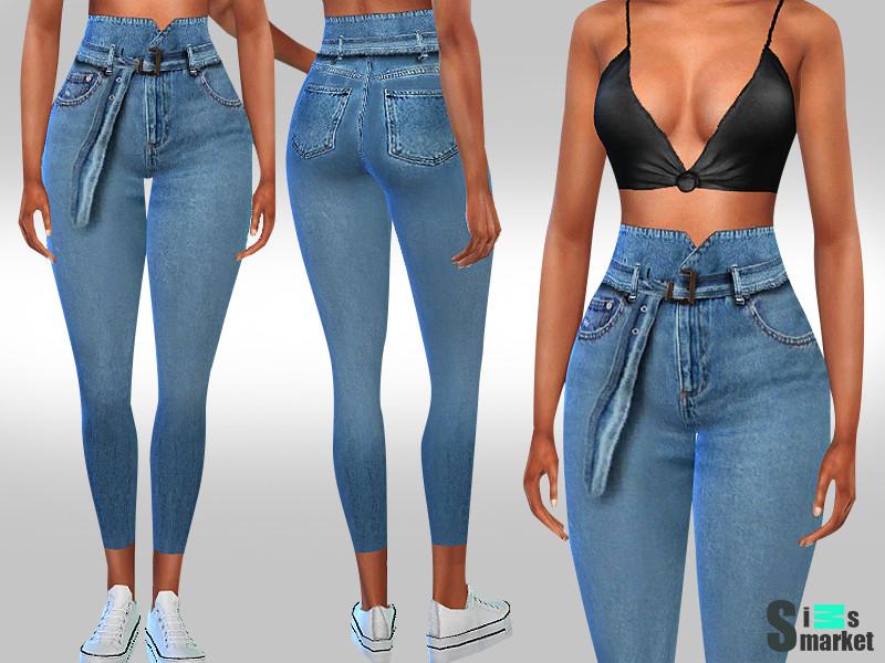 Мод для Sims 4 - прекрасно проработанные джинсы от известного автора для девушек. Высокая талия и джинсовый пояс!