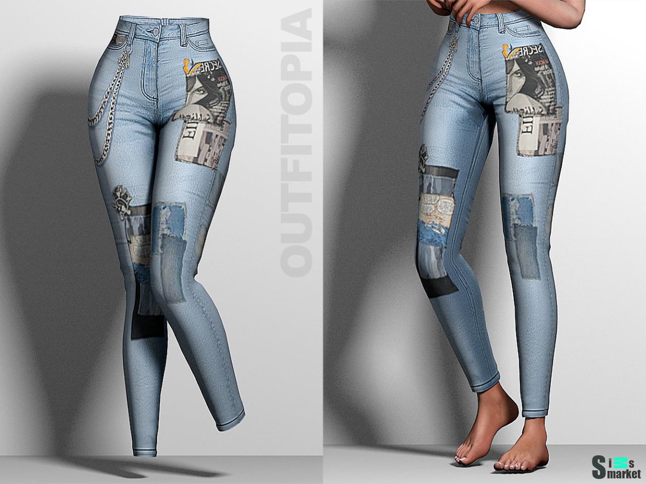 Мод для Sims 4 - джинсы для девушек с различными нашивками / 10 видов.