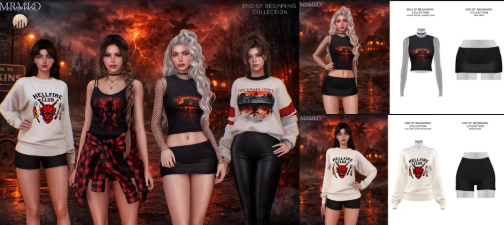 Там, где тьма встречается со стилем, начинается новая эра. End of Beginning — это кинематографичная коллекция высокой моды, вдохновленная таинственной атмосферой маленького городка, сверхъестественными мотивами и смелым уличным стилем 80-х. Эта особая коллаборация busra-tr и MERMALADE сочетает ностальгию с современным стилем, создавая яркие, сюжетные образы. Короткие велосипедные шорты Mermalade Толстовка Mermalade Hellfire Club. Мини-юбка Mermalade. Многослойный топ-сетка
