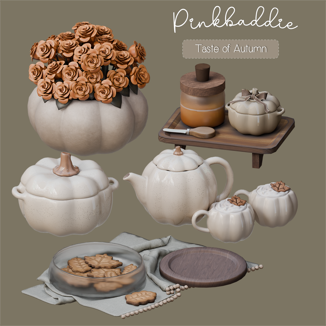 pinkbaddiecc - авторство __________________________ 🎃В этот набор входит 6 предметов в осенней тематике для украшения вашей кухни 🍁 ваза для цветов тыквенный чайник Тыквенная кружка миска для печенья форма для выпечки тыквы набор кухонных банок Они не являются функциональными предметами, то есть ваш сим не может их готовить, они предназначены только для декоративных целей. ⚠️Совет: используйте клавиши ´ и [ для изменения размера объекта.