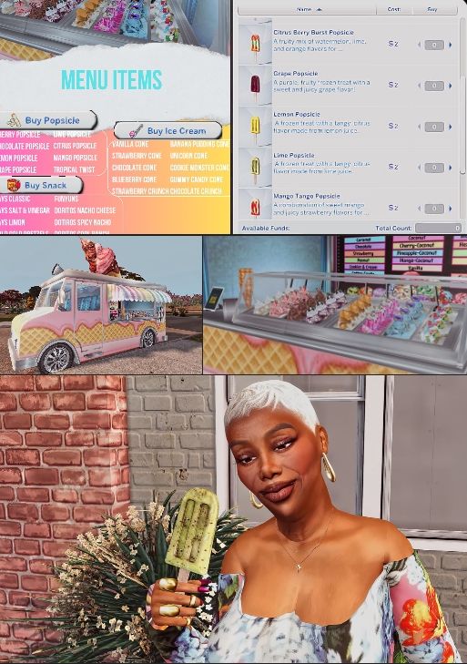 LifelikeSimz - Ice Cream Truck + New Food В фургончики новые виды мороженного. Фургон весит 300мб. Скачать его отдельно можно по ссылке бесплатно https://vk.com/doc676451356_692519766 Сам мод находится тут в архиве.