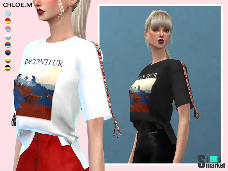 Мод для Sims 4 - крутая футболка с принтами для девушек, имеется несколько дизайнов.
