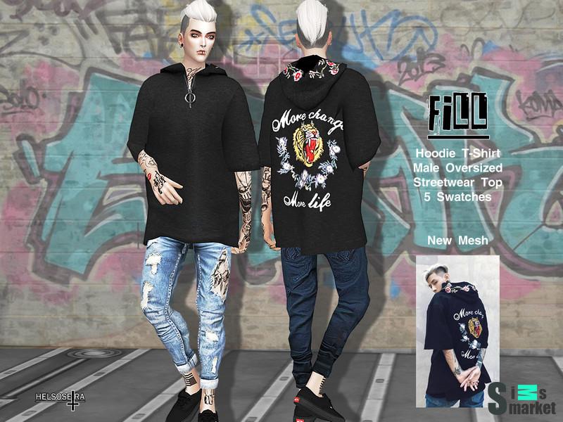 Мод для Sims 4 - мужская оверсайз футболка с капюшоном, множество принтов