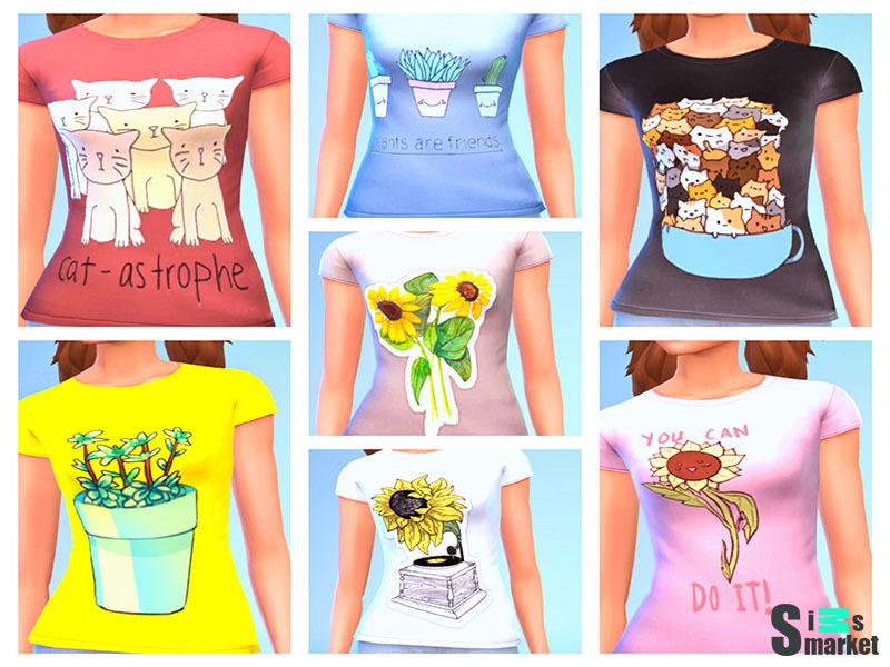 Мод для Sims 4 - множество футболок с различным принтом для девушек.