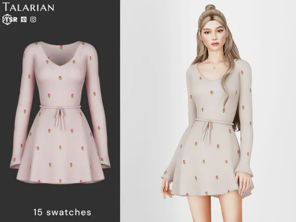 Очаровательное мини-платье с длинными рукавами, ребристой текстурой, мелким цветочным принтом и поясом на талии, создающим привлекательный силуэт. Идеально подходит для повседневной носки, весеннего настроения или нежных романтических образов.