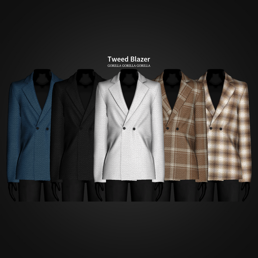 Твидовый пиджак свободного кроя на двух пуговицах в 30 цветовых решениях. HQ совместим. Доступен для мужчин.