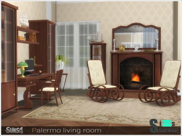 Мод для Sims 4 - комната для отдыха,камин и кресла-качалки обеспечат вам спокойный семейный отдых.