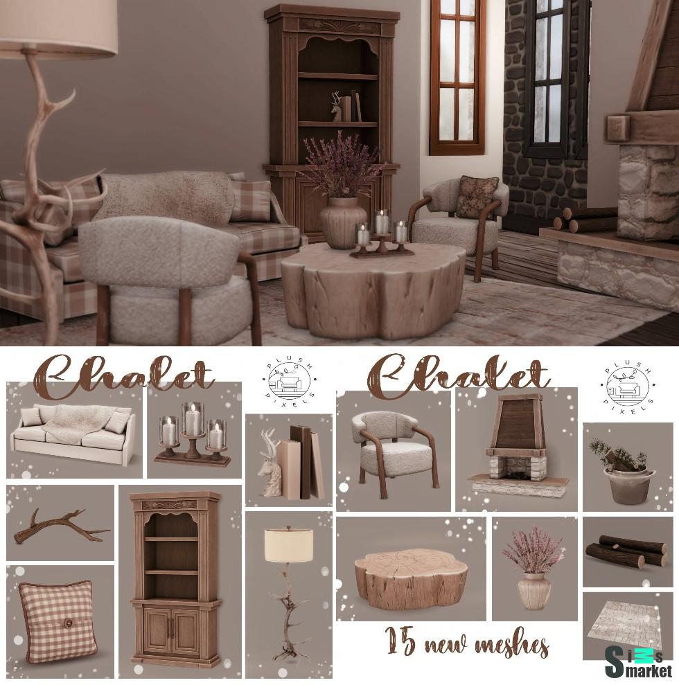 Гостиная ",Swiss chalet", для Симс 4