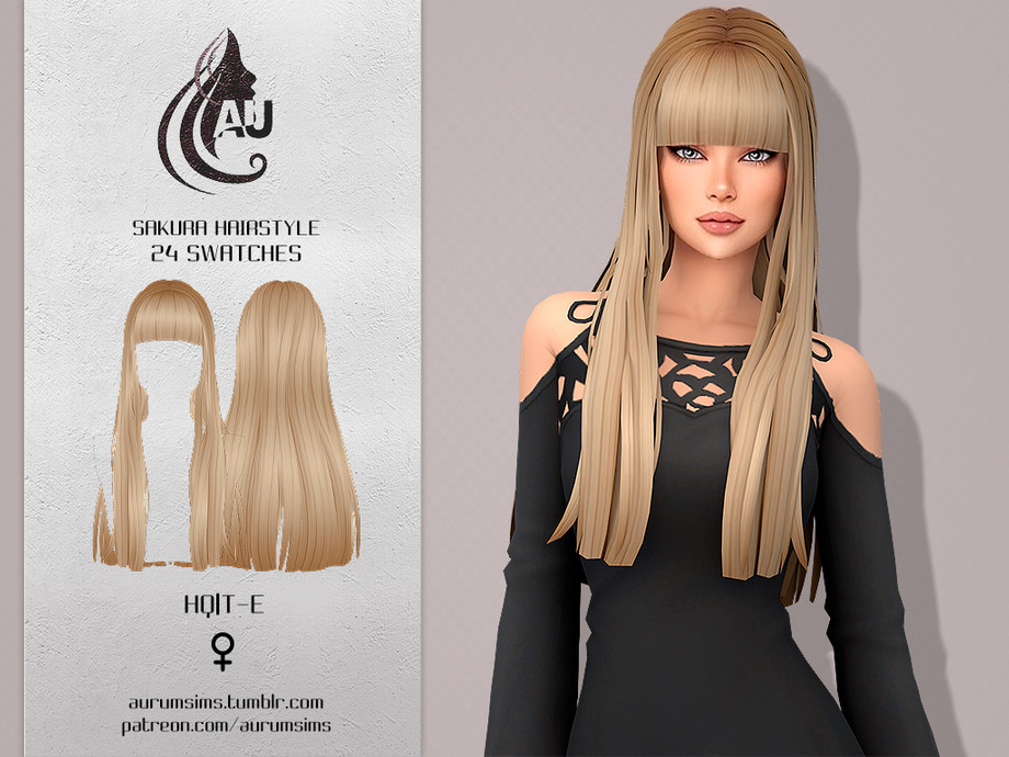 Длинные прямые волосы с челкой в 24 образцах EA для девочек-подростков и пожилых персонажей от Aurum для The Sims 4. Совместимо с базовой игрой. Только для женщин. 24 образца EA.