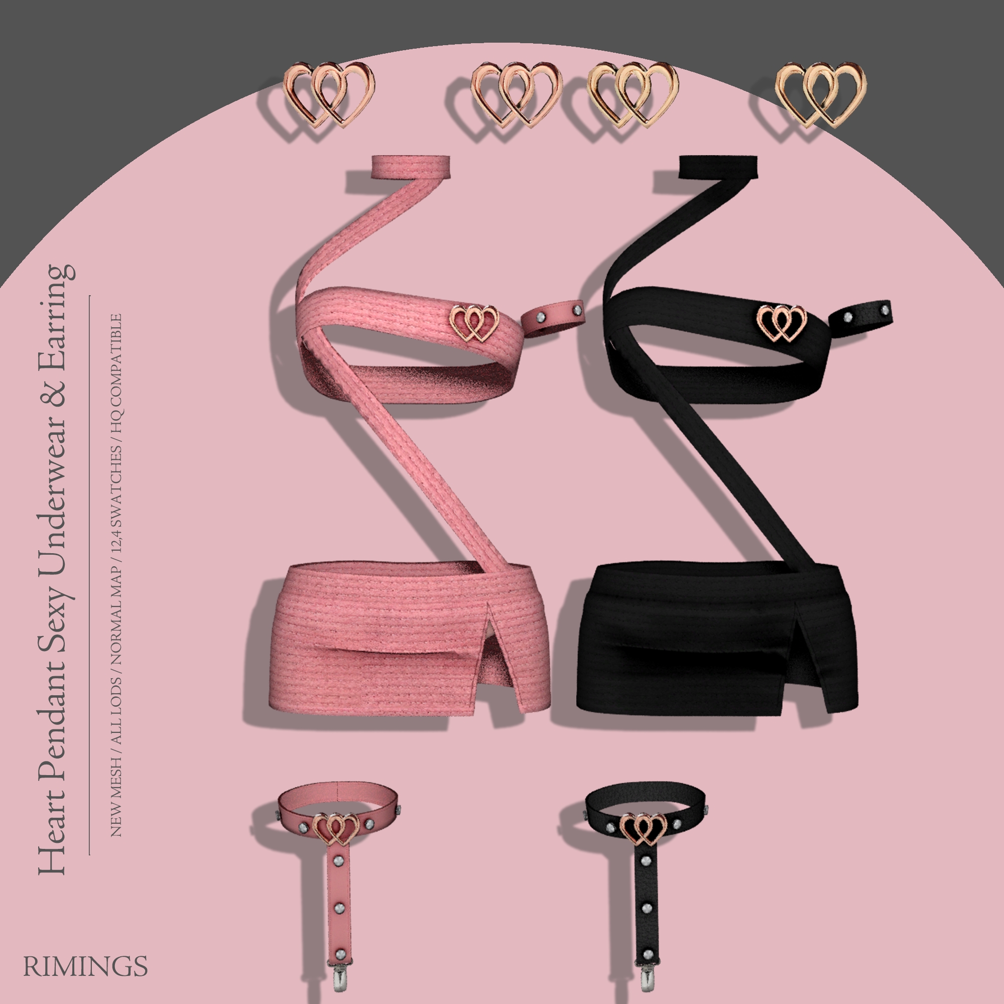 [RIMINGS] Heart Pendant Sexy Underwear and Earring
