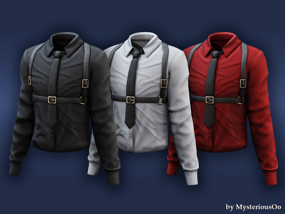 Оригинальное название - Hex Appeal - Shirt with tie and leather harness Стильная рубашка с галстуком и портупеей в 8 цветах