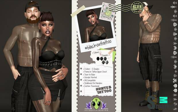 Татуировка для симов и симок от автора unidentifiedsims. - 1 Цвет - 5 оттенков - Встречается в татуировках в верхней части груди - Подходит для подростков и пожилых людей - Совместима с HQ-модом