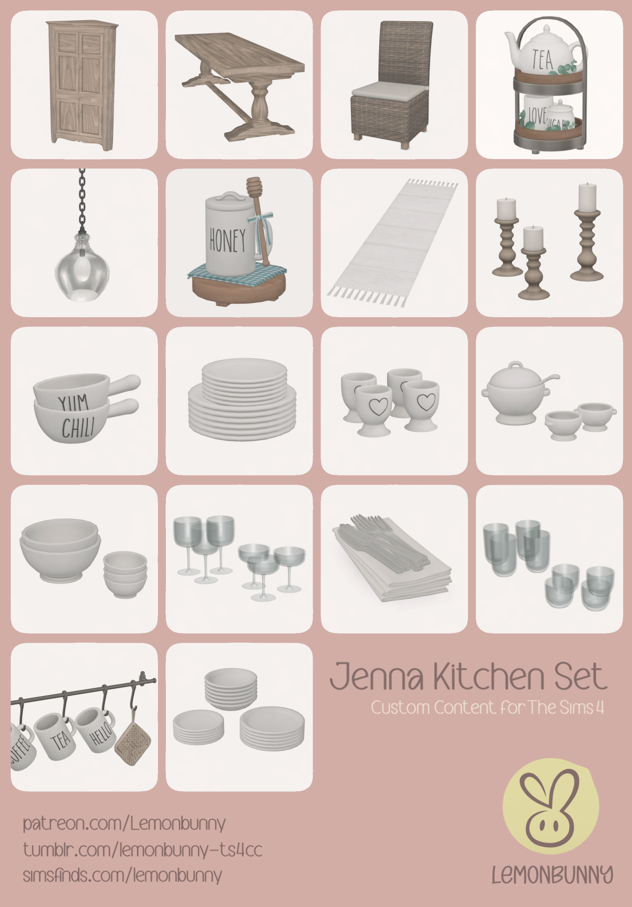 В третьей части видео Дженна представлены следующие материалы: Большие миски - 2 образца Маленькие миски - 2 образца Большие стаканы для воды - 3 образца Маленькие стаканчики для воды - 3 образца 3 отдельные свечи, каждая функциональная (требуется бесплатный набор «Праздничное торжество») — по 5 оттенков каждая. Бокалы для шампанского - 3 варианта расцветки Бокалы для вина - 3 образца Угловой шкаф - 3 образца Обеденный стул - 3 образца Diningtable - 3 образца Отдельная скатерть - 5 образцов 4 разных стопки тарелок — по 2 образца в каждой. Honeyjar - 30 образцов Декоративная подставка для кружек — 8 вариантов расцветки. Чайник - Витрина - 8 образцов Подставки для яиц - 6 образцов Салфетки со столовыми приборами - 4 образца Подвесной светильник среднего и короткого размера — по 2 образца каждого цвета. Chili/Soupcup - 6 образцов Souptureen - 2 образца Soupcup Single и Duo — по 2 образца каждого цвета.