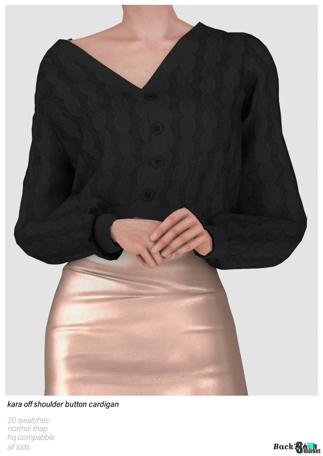 Кардиган ",Kara Off Shoulder Button Cardigan Acc", для Симс 4