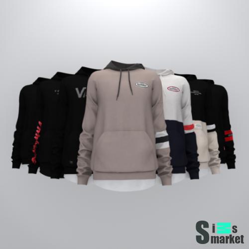 Мод для Sims 4 - худи для парней с капюшоном, имеется несколько дизайнов.