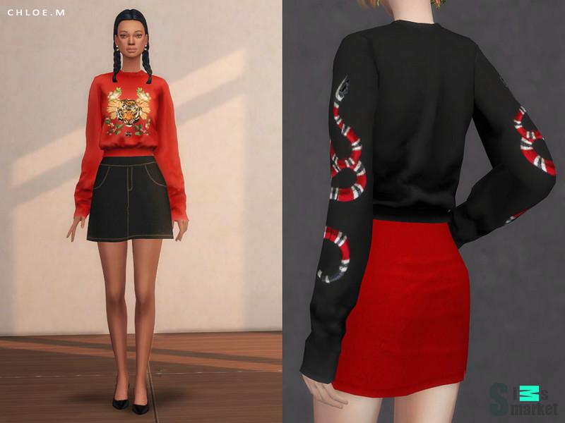 Мод для Sims 4 - крутое худи с различными принтами.